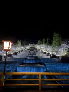 宿のお風呂からのPhoto 宿から徒歩3分洞谷橋からの夜桜Photo
